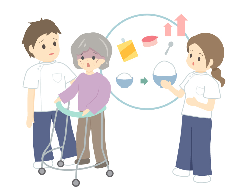 活動量低下 → 食欲低下 → 低栄養 → 筋肉量減少 → さらに動けなくなる