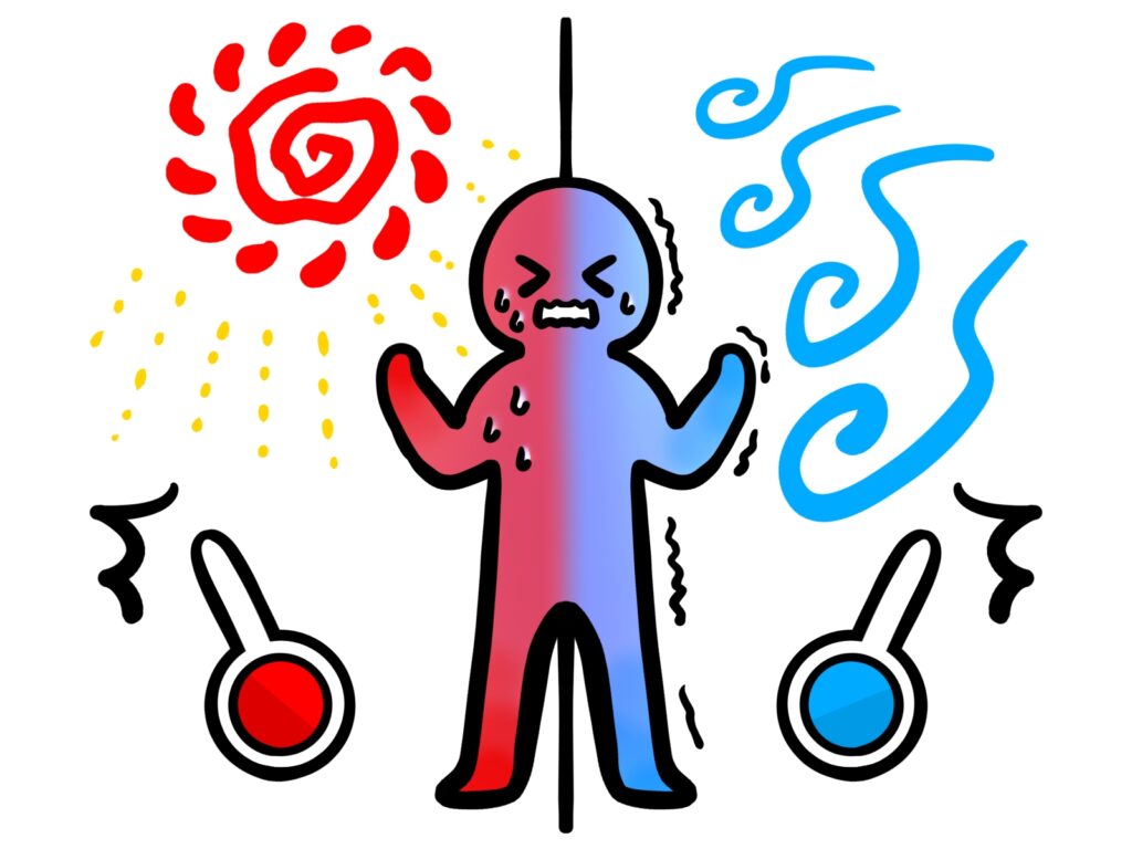 朝と昼で10℃以上の差が出る日もあり、自律神経が過剰に働き血圧の上下が激しくなります。自律神経の調整力が低下している高齢者では特に影響が大きくなります。
